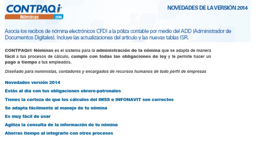 Es el sistema para la administración de la nómina que se adapta de manera fácil a tus procesos de cálculo, cumple con todas las obligaciones de ley y te permite hacer un pago atiempo da tus empleados .