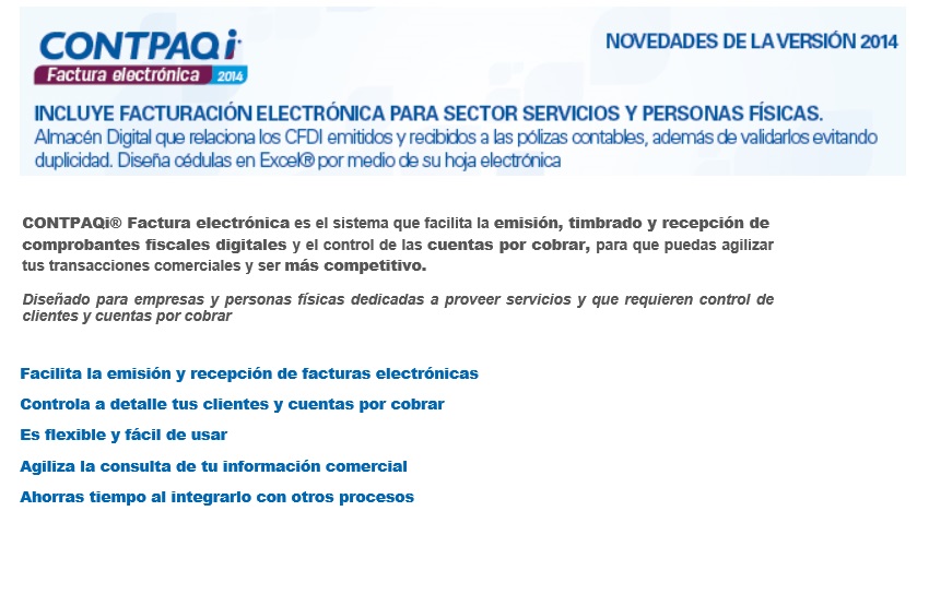 Somos Distribuidores Asociados de contpaq, y ofrecemos la gama de productos para la pequeña y mediana empresa, como son programas Administrativos, Contables, Flujo de Efectivo, Puntos de Venta, Nominas, Facturación Electrónica .