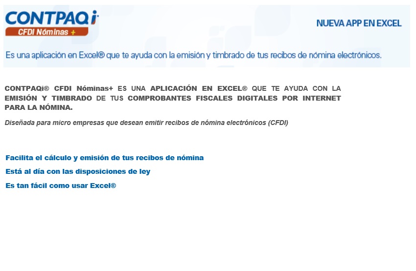 Es una aplicación en Excel, que te ayuda en la emisión y timbrado de sus recibos de Nomina Electrónicos Diseñada para micro empresas que desean emitir recibos de nómina electrónicos (CFDI)
